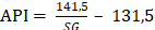 The specific gravity was calculated using the standard formula based on API degrees, providing a precise value under controlled conditions. The calculation was performed using the following equation: