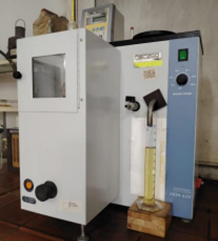 To measure the kinematic viscosity, 20 liters of distilled water were used. First, the time required for a specific volume of liquid to flow by gravity through a capillary tube into the viscometer was measured, ensuring a constant temperature of 40°C. The viscosity constant was then multiplied by the recorded time to obtain the viscosity value.