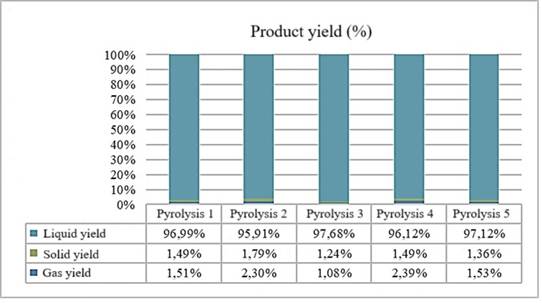 Figure 5. Efficiencies of each Pyrolysis.  Source: Prepared by the authors (2024).