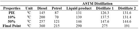 Table 7. ASTM Distillation Comparison of Pyrolysis Product with Commercial Fuels like Diesel and Gasoline