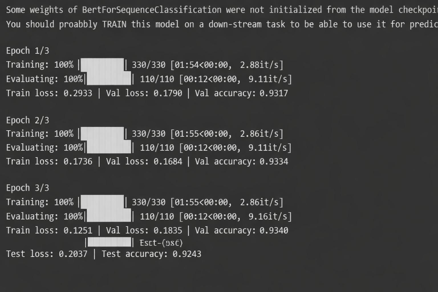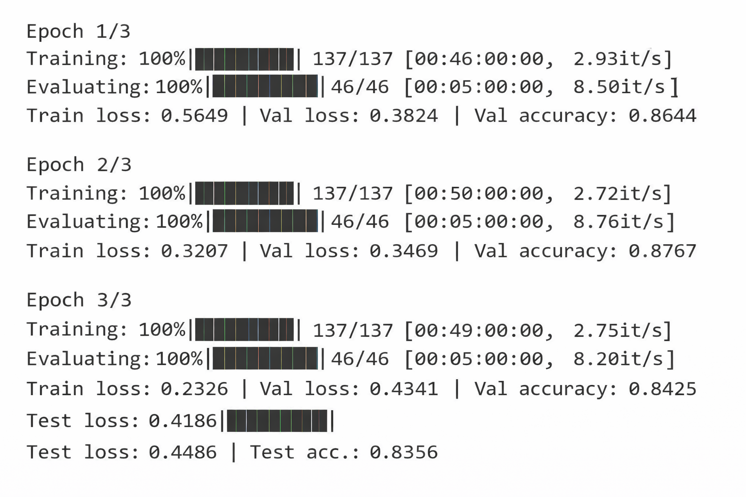 Figure 5. Model training over three epochs. Adapted from the present study.