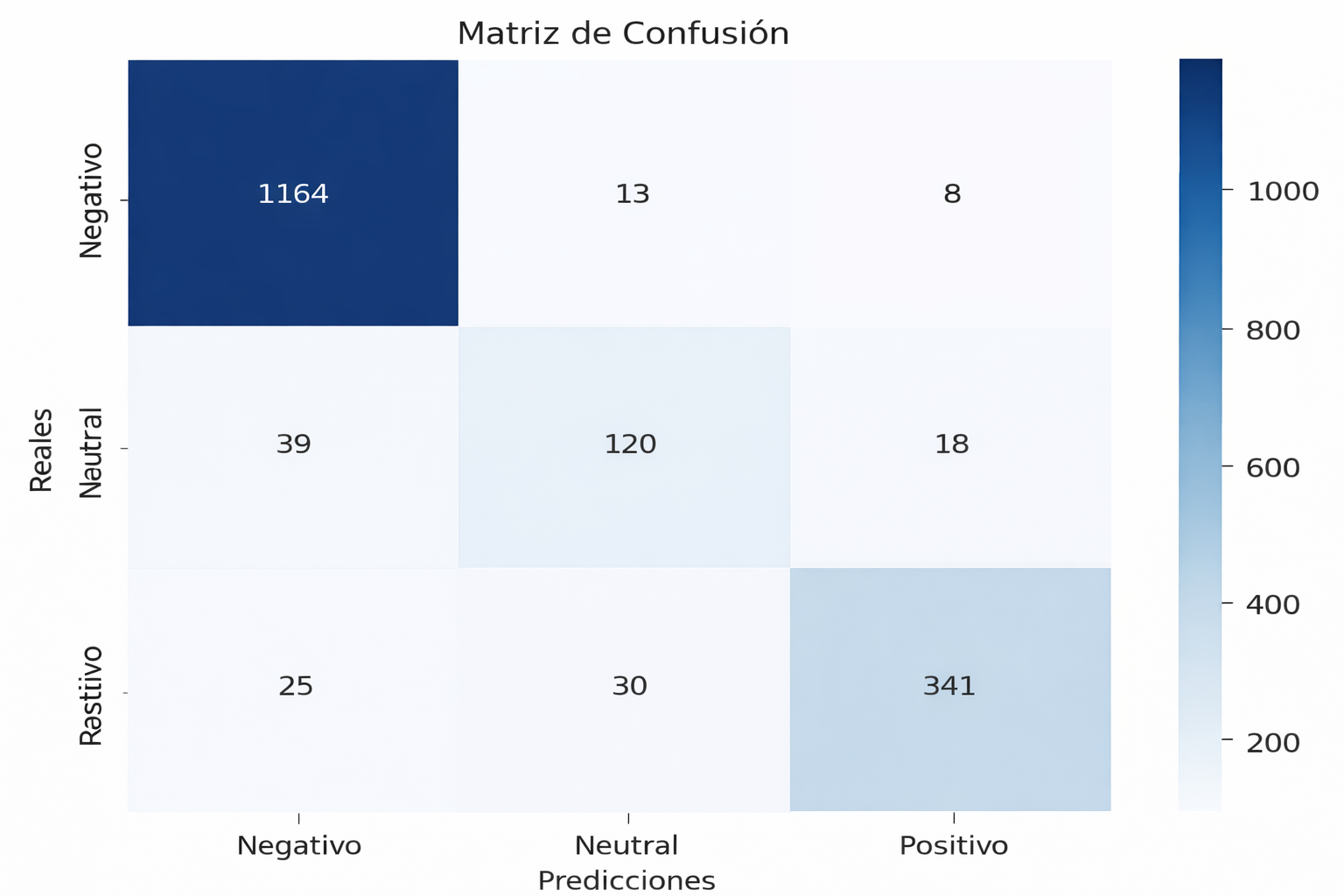 This phase focused on training the BERT model to identify the emotional polarity of user comments, classifying them as positive, negative, or neutral. The training process was conducted over three epochs, with performance indicators such as loss and accuracy monitored to ensure progressive learning. After training was completed, the model was evaluated using a confusion matrix, which enabled the identification of classification errors, particularly in neutral comments. Subsequently, the overall distribution of the identified sentiments was analyzed, providing a global overview of customer perception.