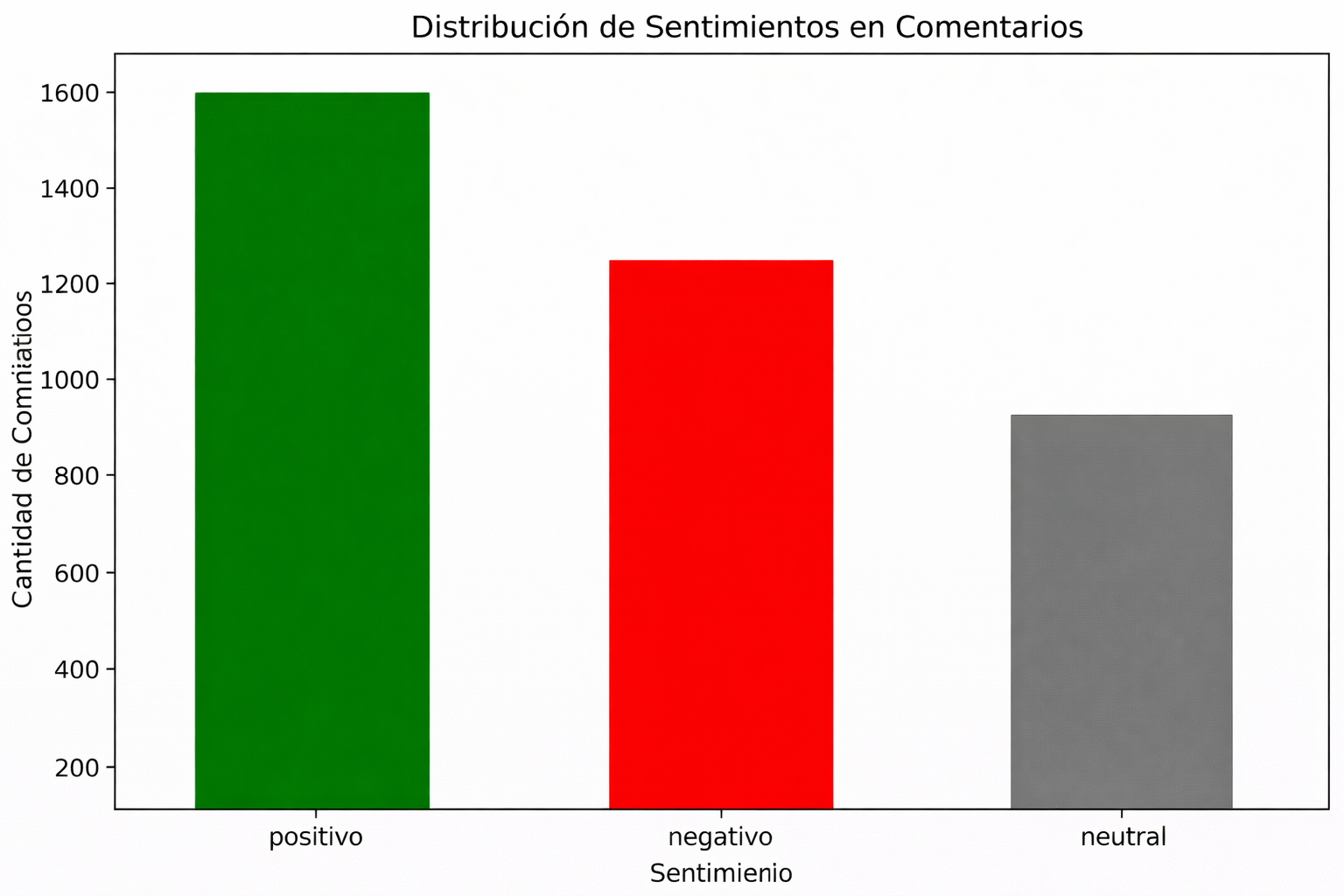 Similarly, Figure 7 illustrates the overall distribution of comments classified as positive, negative, and neutral. A predominance of positive comments is observed, reflecting general acceptance of the service. However, the proportion of negative comments indicates the presence of technical and support-related issues.