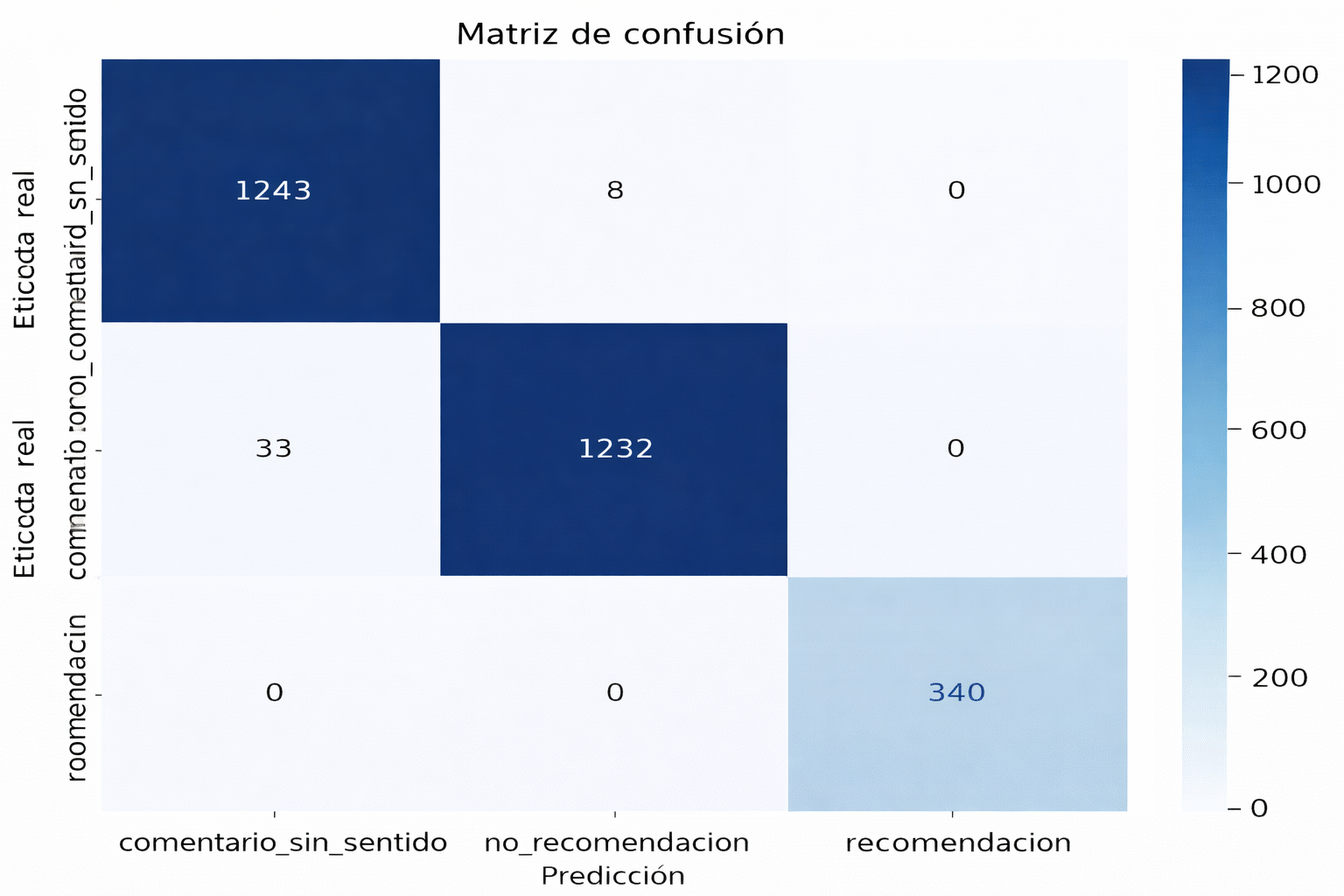 Figure 9. Confusion matrix for comment and recommendation classification. Adapted from the present study.
