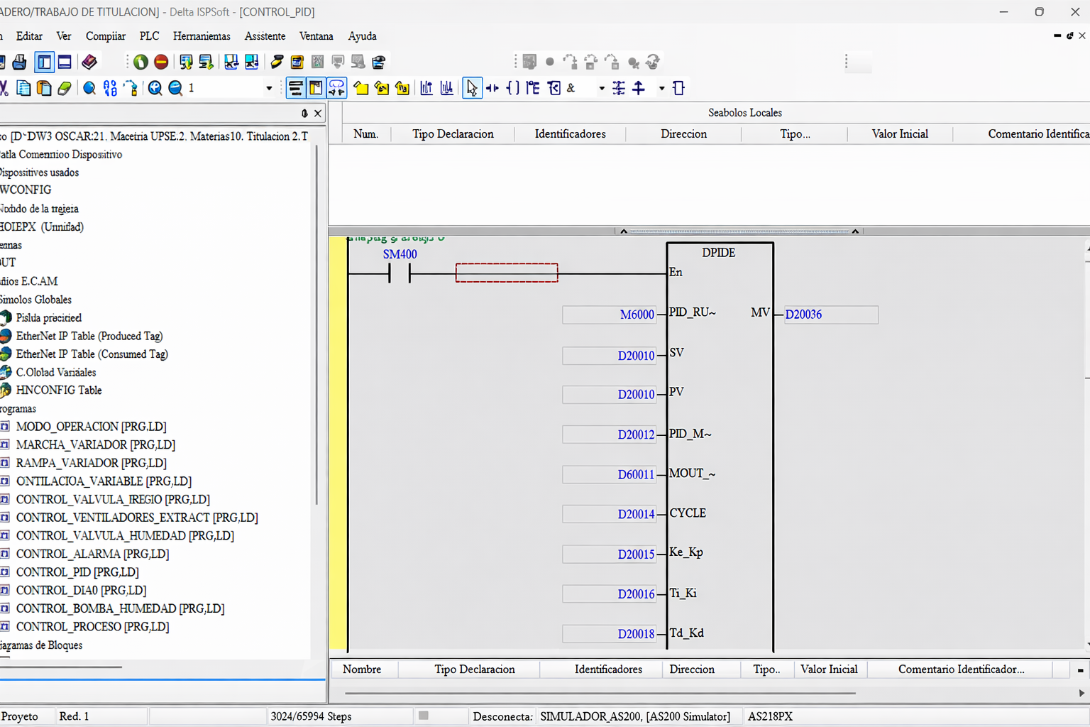 Program validation was carried out entirely within the simulation environment using online monitoring tools. Logical transitions, actuator activation sequences, and timing conditions were verified under different simulated scenarios, confirming consistent and coherent system behavior. The modular programming approach adopted simplifies maintenance tasks and supports the integration of additional subsystems in future development stages (Attia et al., 2025).