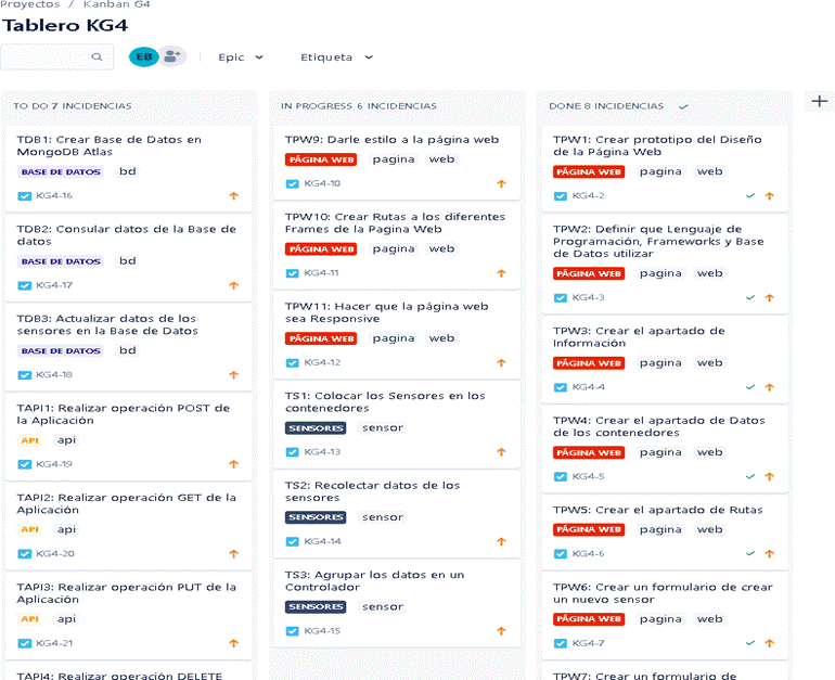 En la Figura 3 se presenta el detalle del tablero Kanban asociado a los procesos, para optimizar la distribución de las rutas de transporte en el servicio de recolección de residuos sólidos y mejorar la comunicación con la ciudadanía, bajo el uso de la plataforma tecnológica Smart Trash Collection (STC).