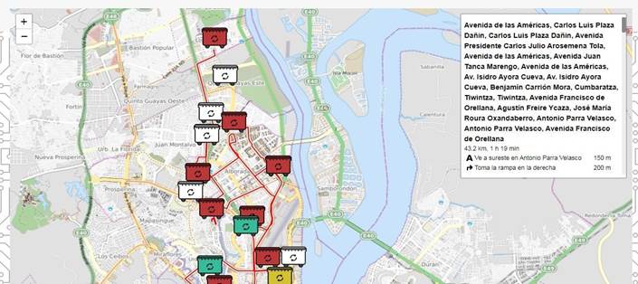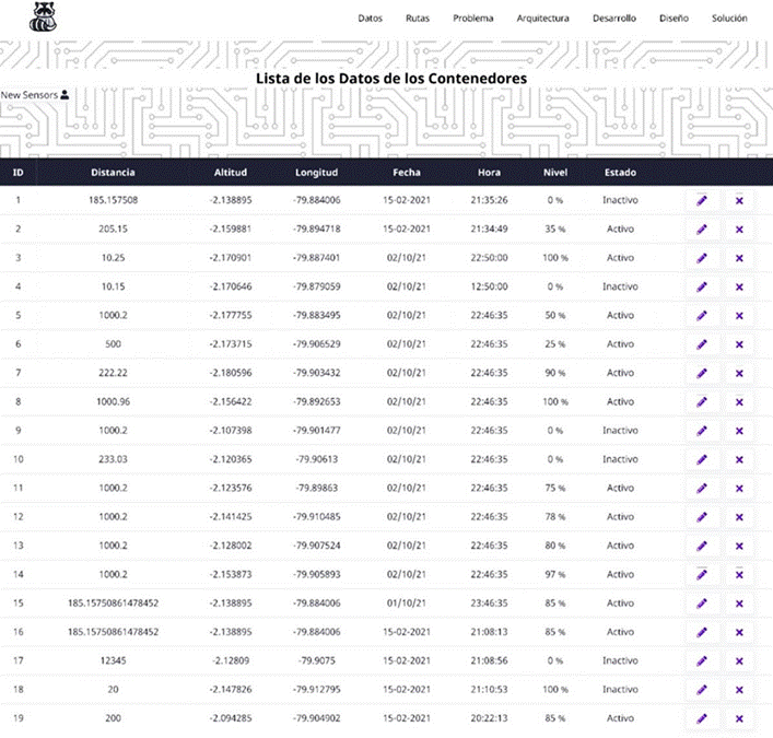 El proceso investigativo culmina con la lista de datos de los contenedores, en una base electrónica que incluye las distancias recorridas, la longitud y altitud de estos vehículos, las horas de cada día, en que se realiza la recolección de desechos, así como el nivel y el estado actual de cada uno de ellos.