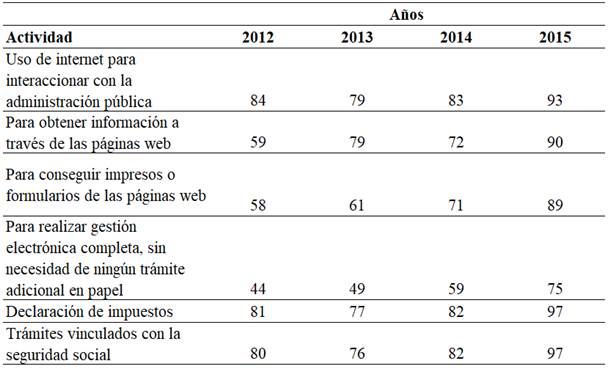Con respecto a la mejora en la competitividad, el cambio en la tecnología puede incidir en una diferenciación en los productos y en mantener una buena base de datos que permita una correcta comercialización con equipos especializados en atención al cliente y servicios post ventas (Delecraz et al., 2022). Por otro lado, en lo que respecta a actividades de negocio electrónico soportadas con TICs, se evidencia en la Tabla 2 que durante el período 2012-2015, las empresas se apoyaron en las tecnologías para las seis actividades vinculadas al mismo. Destacando en el 2015 la gestión de finanzas y presupuesto (48%) y de recursos humanos (41%). Así también el uso de TICs tiene una importante presencia con el 38% en la gestión con clientes, el seguimiento de pedidos y cadena de suministros. Lo que evidencia como el uso de tecnologías en las empresas ecuatorianas ha ido tomando protagonismo en la gestión de clientes, proveedores y empleados.