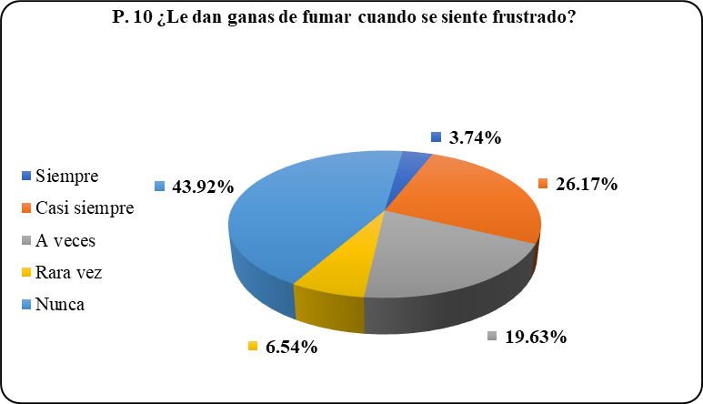 Figura 9. Pregunta 10 ¿Le dan ganas de fumar cuando se siente frustrado?