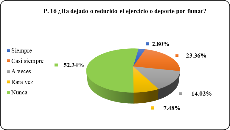 Figura 15. Pregunta 16 ¿Ha dejado o reducido el ejercicio o deporte por fumar?