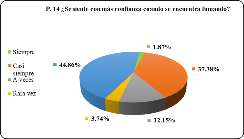 Figura 13. Pregunta 14 ¿Se siente con más confianza cuando se encuentra fumando?