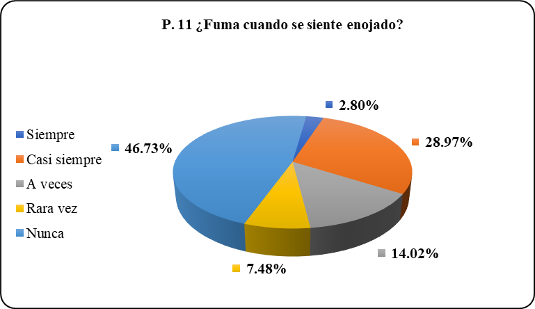 Figura 10. Pregunta 11 ¿Fuma cuando se siente enojado?