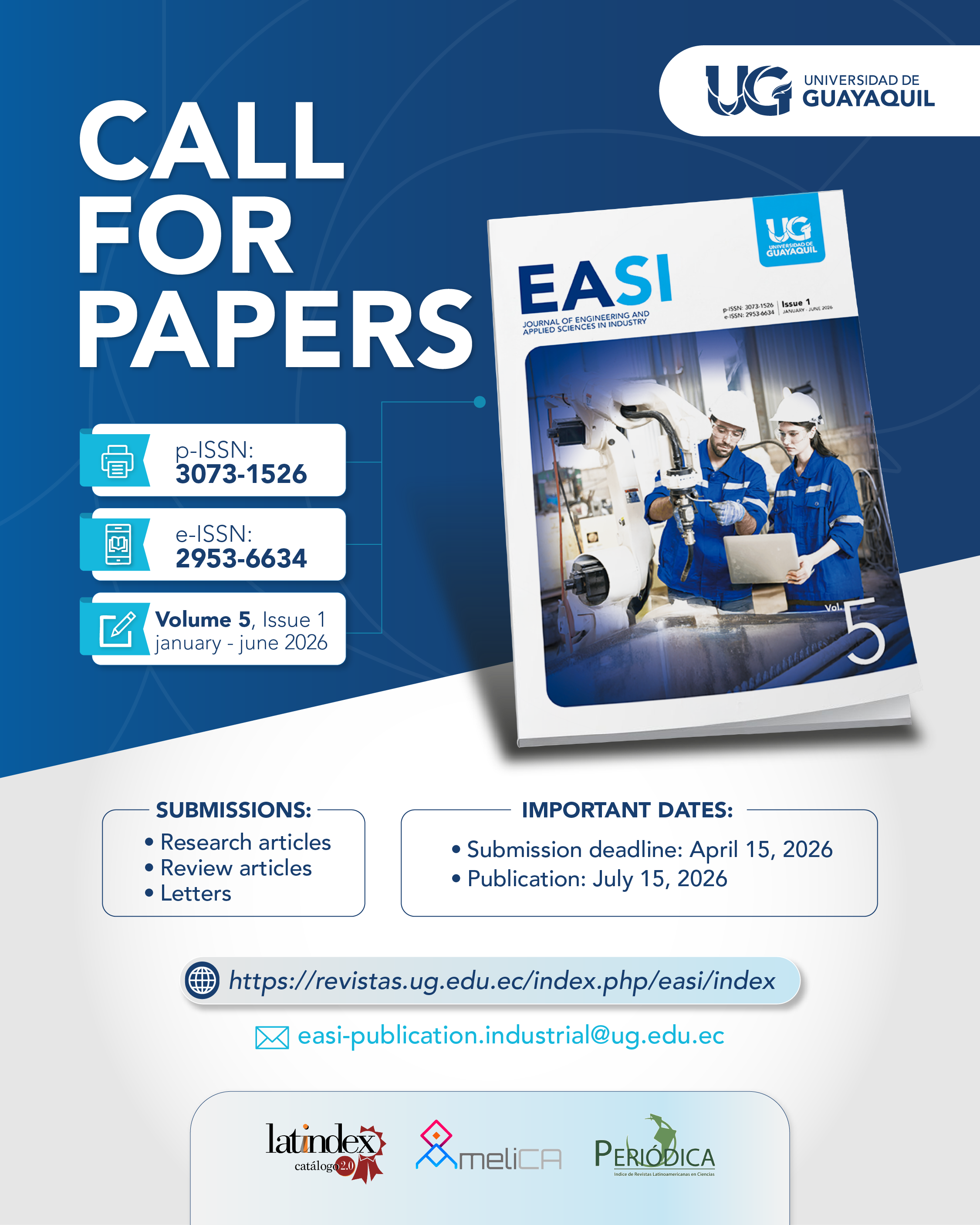 We invite researchers and professionals to contribute to the upcoming issue of the journal: Vol. 5, No. 1 (2026): January-June. EASI accepts submissions of research articles, state-of-the-art reviews, and letters or reports. Additionally, specialists or organizers of scientific events can propose the editing of special issues on specific topics.