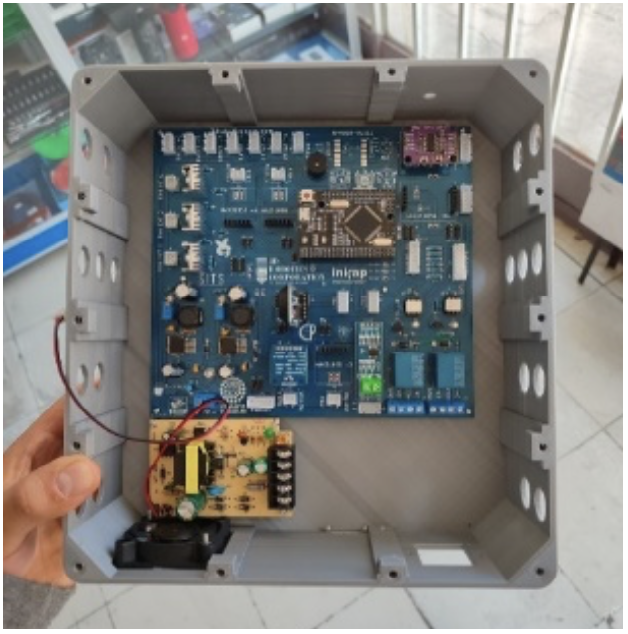 The sensors are based on pre-determined temperature and humidity thresholds. The first tests identify areas for improvement in terms of the durability and stability of the system. One of the main innovations of this project was integrating LoRa technology for remote monitoring of the system. LoRa enables data transmission over long distances with minimal power consumption. LoRa-based communication enables temperature and humidity data to be transmitted from the solar dryer for more detailed remote monitoring. In the second phase, the best ones were identified for the PCB (Printed Circuit Board) design, to make a computer-aided design of a board that will be sent to print and solder components to mitigate possible defects for assembly or failures due to false connections or short circuits. The third step was to print and assemble the PCB and then design and print 3D housing to house all the components.