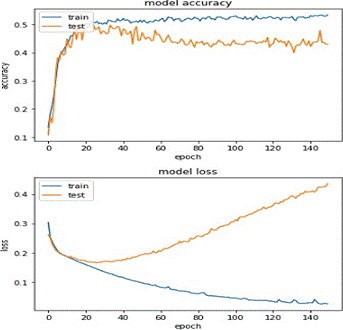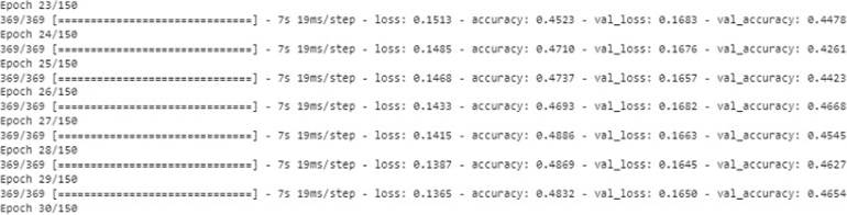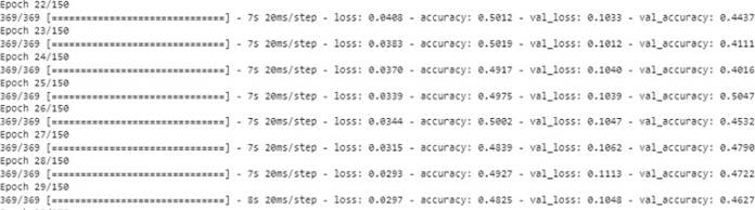 In the following image we can observe the training of the LSTM model, based on the predictions made with the combination 2 of techniques (Tokenization, Stop Word and Stemming) using the neural network model with sequential algorithm.