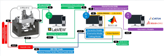 To achieve this technological advance, virtual models are needed for machine tools that allow real-time simulation of the processes developed in their actual peers (Nunez-Montoya et al., 2022). The Industrial Internet of Things (IIoT) monitors, collects, exchanges and analyses information (Boyes et al., 2018). These data are taken to a collaborative platform (3D Experience from Dassault Systèmes) with tools that link this information with its virtual model.