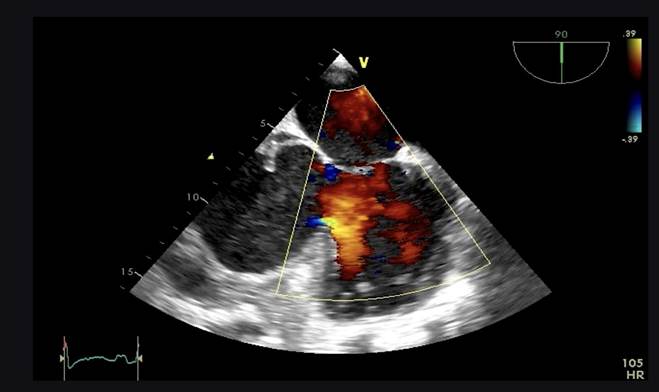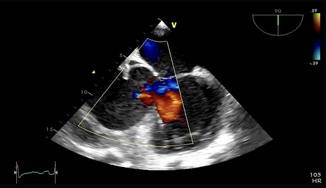 Ilustración 1 Ecocardiograma Transesofágico. Pseudoaneurisma del VI en su porción septal