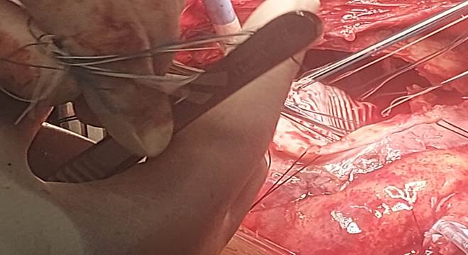 La técnica quirúrgica fue una difícil decisión por la localización del pseudoaneurisma, considerando el tiempo de bomba de circulación extracorpórea que se requiere para este tipo de cirugía, sin embargo, se logró una corrección exitosa de la lesión.
