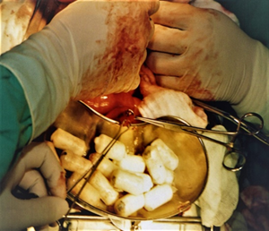 Se lo ingresa a quirófano con el diagnóstico de obstrucción intestinal por cuerpo extraño. En el acto quirúrgico se observa como hallazgos apelotamiento de cuerpo extraño a nivel de la válvula ileocecal con edema y distensión de asa intestinal. Se procede a realizar enterotomía y extracción de capsulas con maniobra de ordenamiento intestinal. Paciente es trasladado a sala de recuperación con monitorización y luego de 8 hora se lo traslada a sala de hospitalización donde se le da de alta a los 4 días sin complicaciones.
