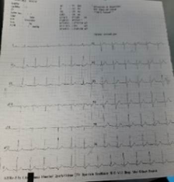 Paciente masculino de 62 años originario y residente en zona urbana del cantón Duran, con antecedentes patológicos personales de hipertensión arterial. Ingresa al área de emergencia por demanda espontánea el 6 de septiembre del 2022 a las 18:00 con clasificación de Mánchester-esi III, por sensación de falta de aire, diaforesis y coloración azul oscura de piel. Refiere cuadro clínico de 15 horas de evolución a su llegada sin aparente causa desencadenante y de inicio súbito progresivo mientras se encontraba en una reunión familiar. Este se caracterizaba por sensación de falta de aire leve, disconfort torácico inespecífico tolerable que cedía al reposo, diaforesis generalizada, vómitos biliosos por 2 ocasiones, mareo subjetivo moderado y cambio de coloración azulada de piel de manera súbita que se intensificaba con el pasar de las horas por lo que decide acudir a esta casa de salud, negó alza térmico y sintomatología de otro órgano o sistema.