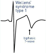 El síndrome de Wellens describe un patrón de cambios electrocardiográficos (ECG), particularmente ondas T bifásicas o profundamente invertidas en las derivaciones V2-V3, que es altamente específico de la estenosis proximal crítica de la arteria descendente anterior. (ver Tabla 1) También se le conoce como síndrome de onda T anterior descendente. Por lo general, cuando los pacientes con síndrome de Wellens acuden al servicio de urgencias no sienten dolor y, por lo general, las enzimas cardíacas son normales o sólo ligeramente elevadas. Sin embargo, es importante reconocer los patrones del ECG, ya que estos pacientes tienen un alto riesgo de sufrir un infarto agudo de miocardio de gran tamaño inminente en la pared anterior. De hecho, cuando los Dres. De Zwaan, Wellens y sus colegas identificaron por primera vez el síndrome a principios de la década de 1980 y observaron que el 75% de los pacientes con estos hallazgos en el ECG desarrollaban un infarto agudo de miocardio de la pared anterior en cuestión de semanas si eran tratados únicamente con tratamiento médico. El tratamiento definitivo suele implicar cateterismo cardíaco con intervención coronaria percutánea (ICP) para aliviar la oclusión.