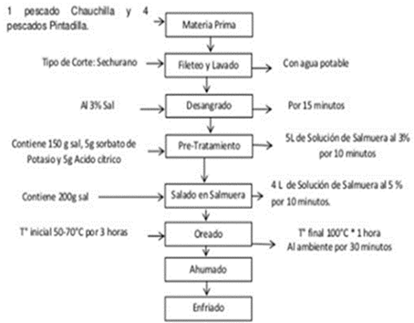 Fig. 2. Diagrama de flujo de procesamiento de ahumado en pescado