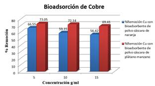 3.3. Bioadsorción de cobre con el polvo de cáscara de naranja y plátano manzano