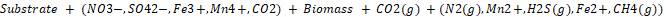 Otros aceptadores de electrón como los iones nitrato, sulfato, férrico, manganeso, y así sucesivamente, serán utilizados cuando el oxígeno no está disponible. Es obligar los organismos anaerobios a ser dominante en ausencia del oxígeno [22]. La degradación bajo condiciones anaerobias puede ser relativamente lenta. Los productos metabólicos de la biodegradación anaerobia incluyen los ácidos orgánicos simples, el CO2, el H2O, el CH4, el H2, el N2, y la masa de la célula [23].