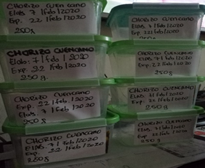 · A través de varias experimentaciones en los análisis de laboratorio se pudo determinar el tiempo de vida útil que tiene el chorizo cuencano con la aplicación de aceites esenciales de romero (0,3) y feijoa (0,4) en el cual se comprobó que la vida útil es de 15 días según los análisis del laboratorio PROTAL.