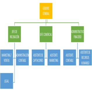 Se realizará una estructura organizacional de la empresa donde se implementará un modelo que sea el más idóneo, se establecerá la misión, visión y sus respectivas políticas empresariales. Se contempla el uso de manuales de operatividad en la incubadora, esto significa que todo proyecto incubado tendrá su respectivo proceso estandarizado con sus respectivos análisis de avances y resultados.