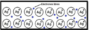 Fig. 5. Enlace metálico de nanopartículas de plata en la nube de electrones