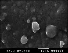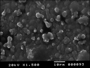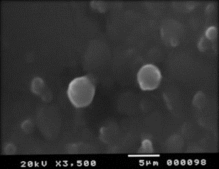 El análisis se realizó en el laboratorio de microscopia electrónica de barrido del Instituto Nacional de Investigación de Salud Pública (INSPI) en el equipo Microscopio Electrónico de Barrido JEOL (JSM 5310), a las muestras se les dio un baño de oro en el metalizador JEOL (FJFC-1200), con un tiempo de exposición de 30 minutos por lo que se divisa formas esféricas y su tamaño oscila entre los 10-15nm, tomando las imágenes que presentan menos aglomeración [18]