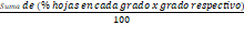 e) Porcentaje de hojas infectadas por cada grado (Método de Stover): Se determinó dividiendo el total de hojas en cada grado entre el número total de hojas para luego multiplicarlo por 100.