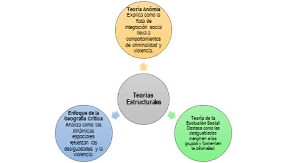 The analysis of intentional homicides in Guayaquil requires a deep understanding of the social and economic dynamics that shape the city. This study draws on three key theoretical frameworks: Anomie Theory, Social Exclusion Theory, and approaches from  “ Critical Geography and the Production of Space” (see Fig. 3). These perspectives allow for an exploration of how socioeconomic inequalities, marginalization, and spatial configuration contribute to the generation of urban violence. Each of these theories provides an analytical framework for understanding the specific context of Guayaquil, where violence is not only a symptom of social breakdown but also an expression of the structural tensions present in the urban environment.