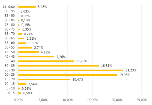 Regarding intentional homicides by age group (see Fig. 6), the most affected population comprises victims aged 25 to 30 years, representing 21.23% of the total homicides during the study period. This group is followed by victims aged 20 to 25 years (19.95%), 30 to 35 years (16.31%), and 35 to 40 years (11.25%). It is also noteworthy that homicides were recorded among children, adolescents, and young people aged 15 to 20 years, accounting for 10.47% of the total.