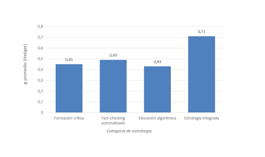 Tercero, el sesgo de publicación es un riesgo latente. En alfabetización mediática y desinformación tienden a publicarse resultados positivos —intervenciones que ‘funcionan’— mientras los ensayos con efectos nulos o negativos suelen quedar archivados en el ‘cajón gris’. Esta asimetría puede inflar la percepción de eficacia, sobre todo en las estrategias de formación crítica donde los tamaños de efecto varían del 0.28 al 0.61. Un metaanálisis con técnicas de ‘trim & fill’ o análisis de embudo podría estimar cuántos estudios faltantes alterarían las medias, pero requeriría un corpus mayor.