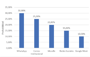 La probabilidad condicionada de que WhatsApp sea la herramienta más efectiva, dado los resultados obtenidos, es del 30%. Este procedimiento se repitió para el resto de herramientas, de forma que se puedan priorizar las herramientas más efectivas en función de la evidencia.