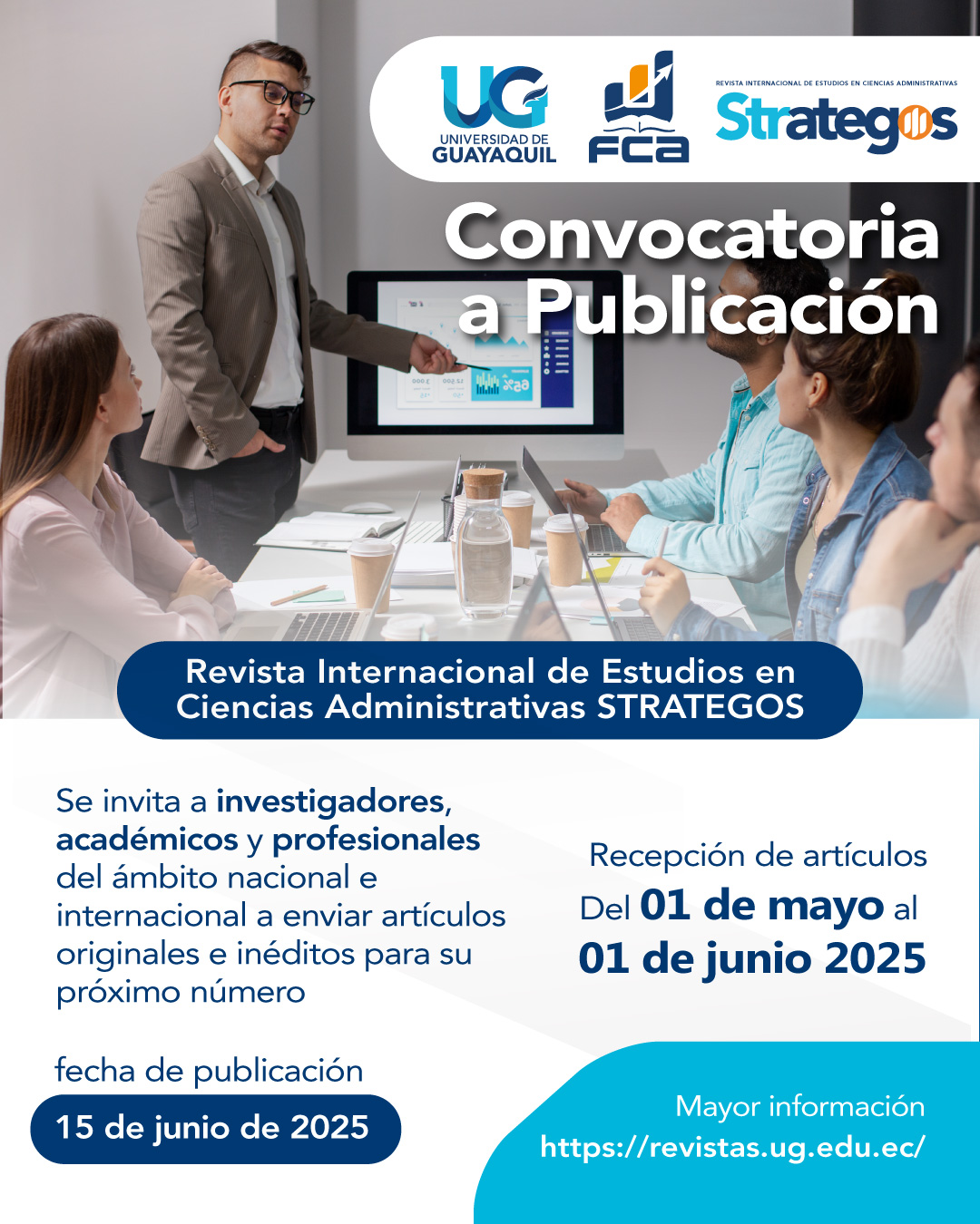 La Revista Científica STRATEGOS, editada por la Universidad de Guayaquil, invita a investigadores, académicos y profesionales del ámbito nacional e internacional a enviar artículos originales e inéditos para su próximo número, con fecha de publicación el 10 de enero de 2026.